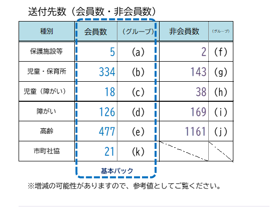 基本は、会員である福祉事業所や公的機関へ発送しますが、本会所有のリストに基づき、発送先のグループを選択し調整することが可能!