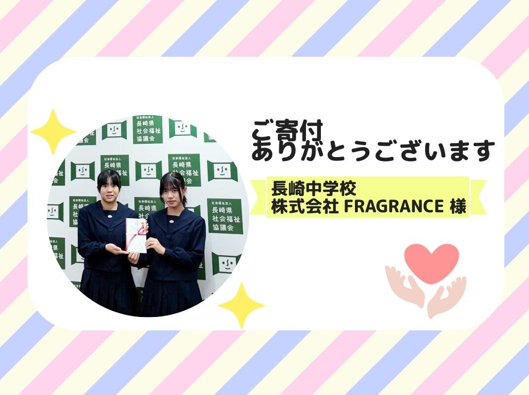 令和7年11月19日、長崎中学校の株式会社FRAGRANCE様から寄付金をいただきました。