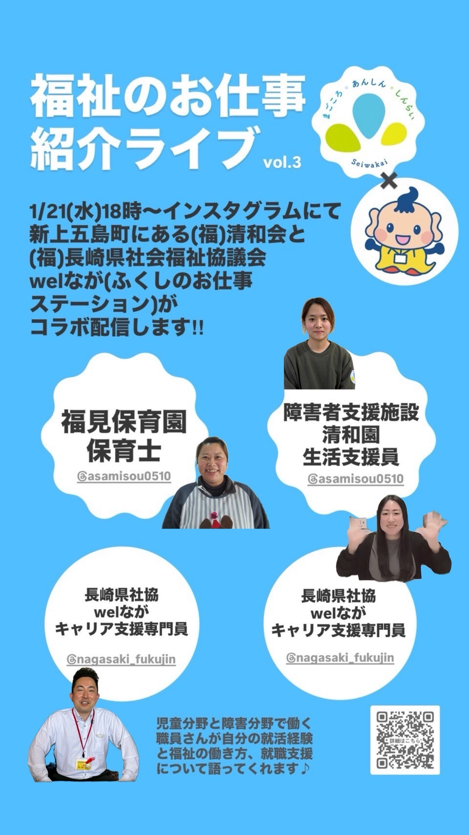 (福)清和会 × (福)長崎県社協 welなが(ふくしのお仕事ステーション) インスタコラボライブ配信